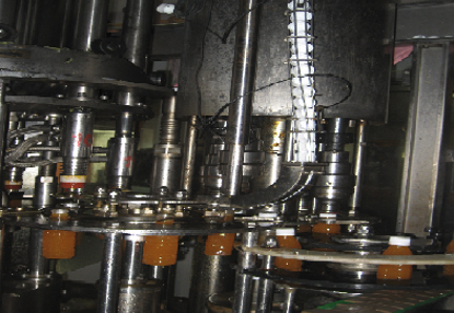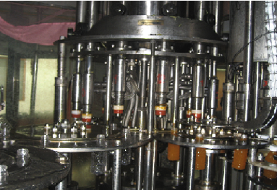 Bottles are transferred from the washing station to the filling station where bottles are filled up to neck level or as required principle of filling is based on GRAVITY –FILL- TECHNOLOGY
