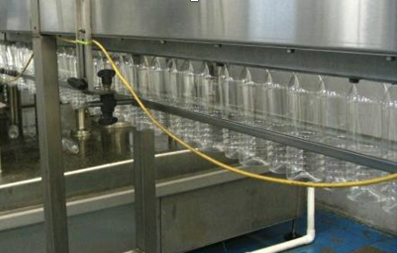 The duly inverted bottles are sprayed By high pressure pump through rinsing nozzles. After 180-degree rotation the washing cycles gets stopped and bottles are re-inverted and delivered to the out feed neck guide plate, which transfers the bottle to the filling head.