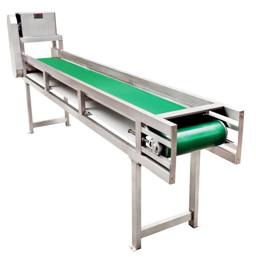 Out feed conveyor fitted with a specially designed SS slats for conveying fruit/vegetable onto the next stage after washing.