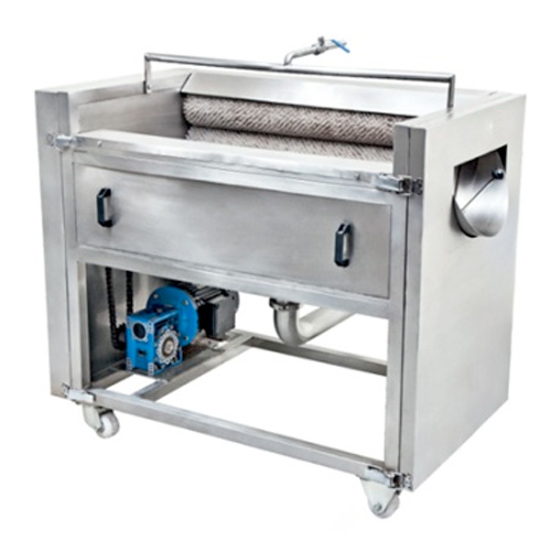 The washer is equipped with 7/9 rotating soft/hard brushes which thoroughly clean the vegetables while simultaneously peeling them.