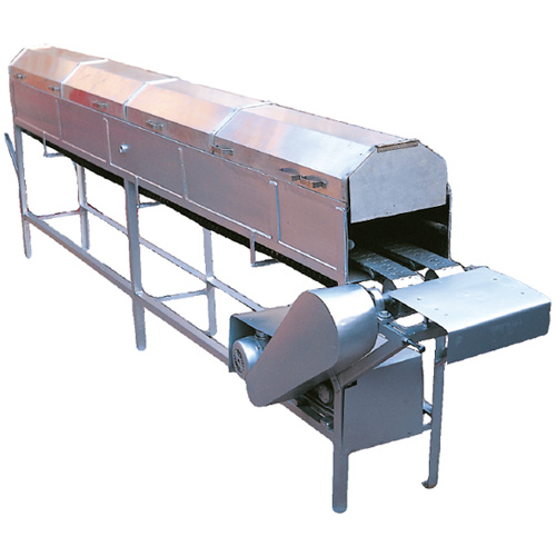 Complete structure is made of SS 304 and the conveyor belt is made of high temperature resistant polypropylene (CPP).