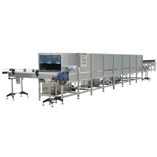 The shower cooler can be designed into 1/2/3 stage and in case of 2/3 stage design, the cans/bottles are subjected to warm water spray in 1st stage followed by ambient/chilled water/spray in the 2nd & 3rd stage.