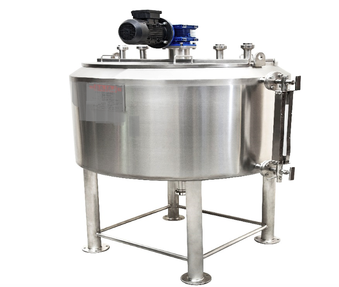The tank is fitted with slow speed agitator for slow speed mixing of the product while it's heated.